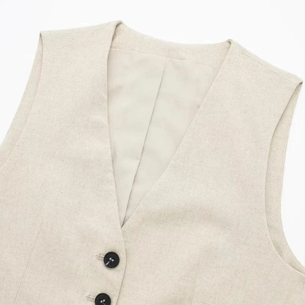 Confeccionado em linho premium, este conjunto apresenta a nova tendência no verão 2025, que traz estilo próprio e refinado sem deixar de estar confortável. Sua escolha perfeita nos dias quentes, tanto para um estilo formal ou casual.