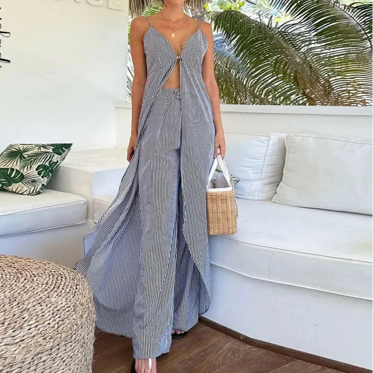 O Conjunto Listrado Kafta Fellinne combina o minimalismo sofisticado com o frescor da liberdade.